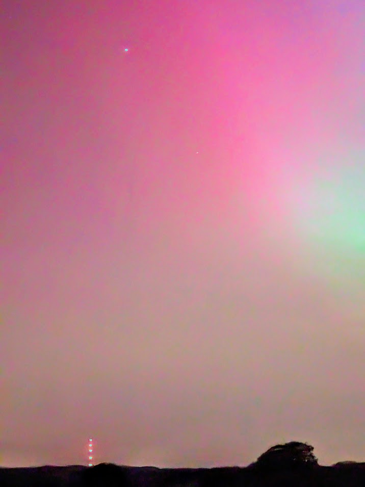 Am frühen Abend wurde offensichtlich, dass sich auf der Sonne etwas tat. Doch wie in den letzten Jahren nahm ich die Ankündigung von "Polarlichtern über Norddeutschland" nicht mehr ernst. Dann meldete sich Pom und sagte, er würde rausgehen.