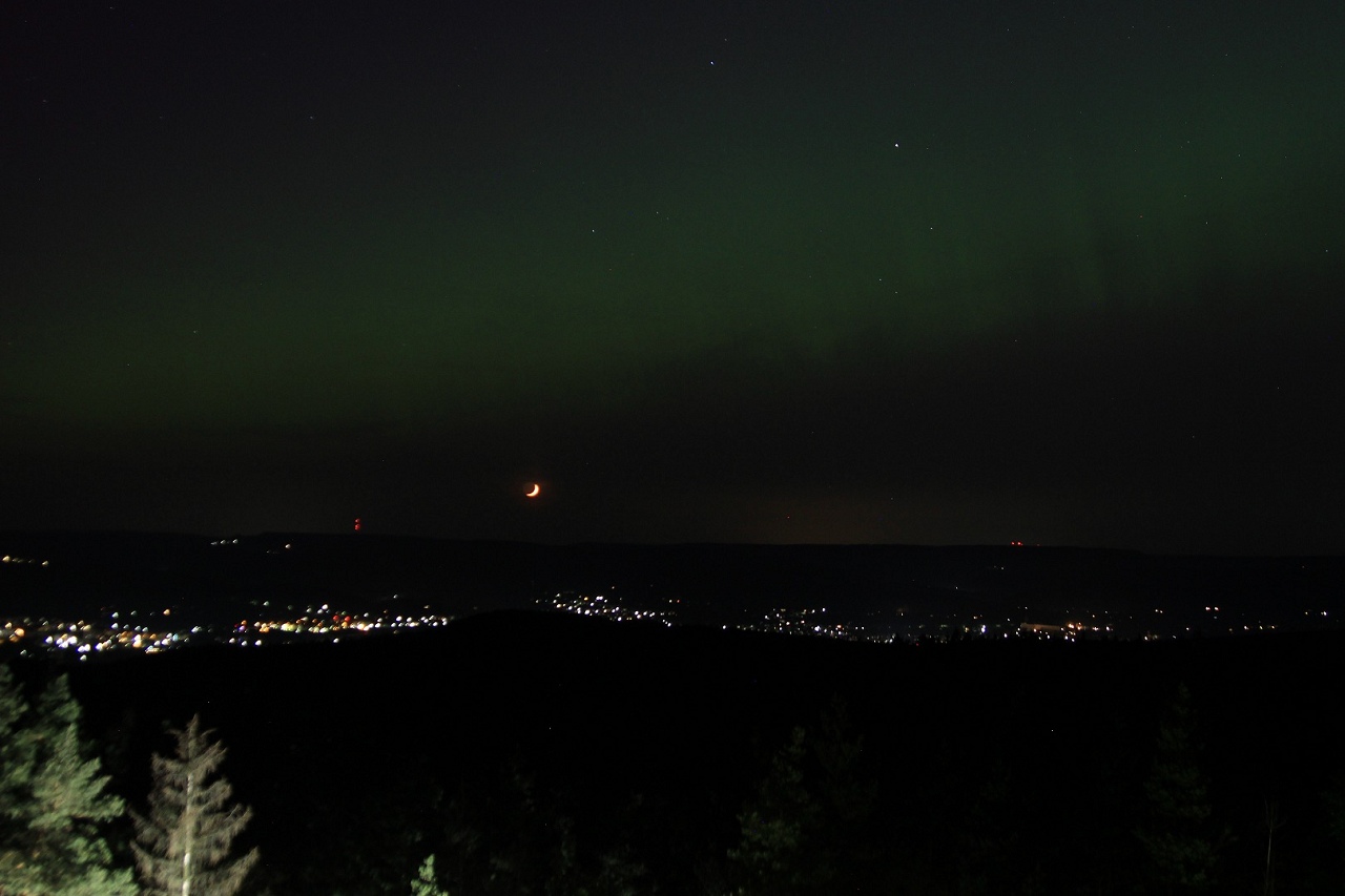 Die optische Aurora wurde immer stärker und war in alle Richtungen zu sehen, sogar Richtung Süden waren Polarlichter zu erkennen. Das Log füllte sich auch langsam. Mit 9A (Kroatien) und I (Italien) hatte ich zwei neue UKW-Länder für mich. Nach 5 QSOs beschloss ich, "Schluss" zu machen und den Ausblick zu genießen. Wer weiß, ob ich so etwas nochmal sehen kann.