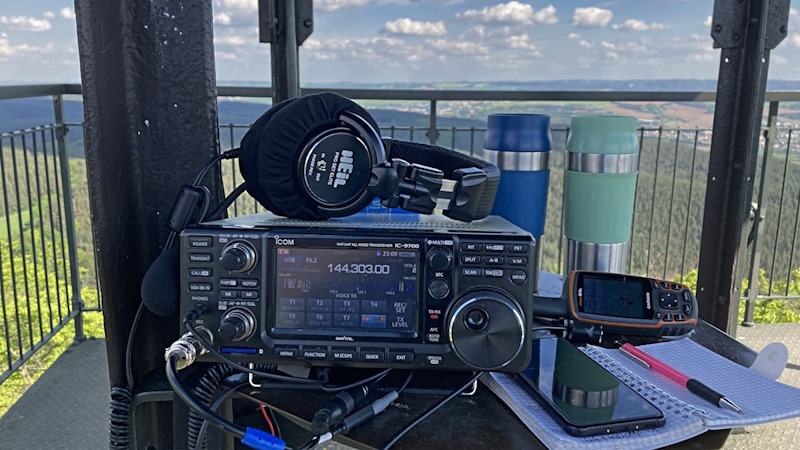 Der Aussichtsturm auf dem Kulm DM/TH-832 war etwa so voll wie der auf DA/NI-096. Der einzige ernsthafte Aurora-Fotograf ließ sich nebenbei gerne von mir ein paar aurora-verscatterte CW-Signale vorspielen. Als die SSB-Signale stark genug wurden, war er aber schon am Einpacken seiner Ausrüstung und wenig interessiert, da noch zuzuhören. Na gut, dann versuche ich halt jetzt ein QSO und nicht später. Ich muss nur noch das Headset aus dem Rucksack nehmen und anschließen.