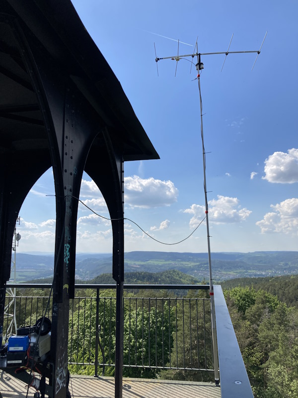 Die Antenne stand die ganze Zeit erstaunlich weit Richtung Osten. Ab gefühlt 60° (so halbwegs an der Landmarke Leuchtenburg nahe Jena bestimmt) konnte ich leider nicht mehr weiter drehen, weil dann das QRM drastisch anstieg. Nach den AU-Reports, die ich anschließend von Funkfreunden erhalten habe, wäre eine Antennenrichtung von bis zu 80° noch besser gewesen. Krass.