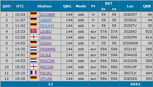 LA3EQ, der das ODX bei Pom war (925 km), hat bei mir "nur" 681 km ins Log gebracht.